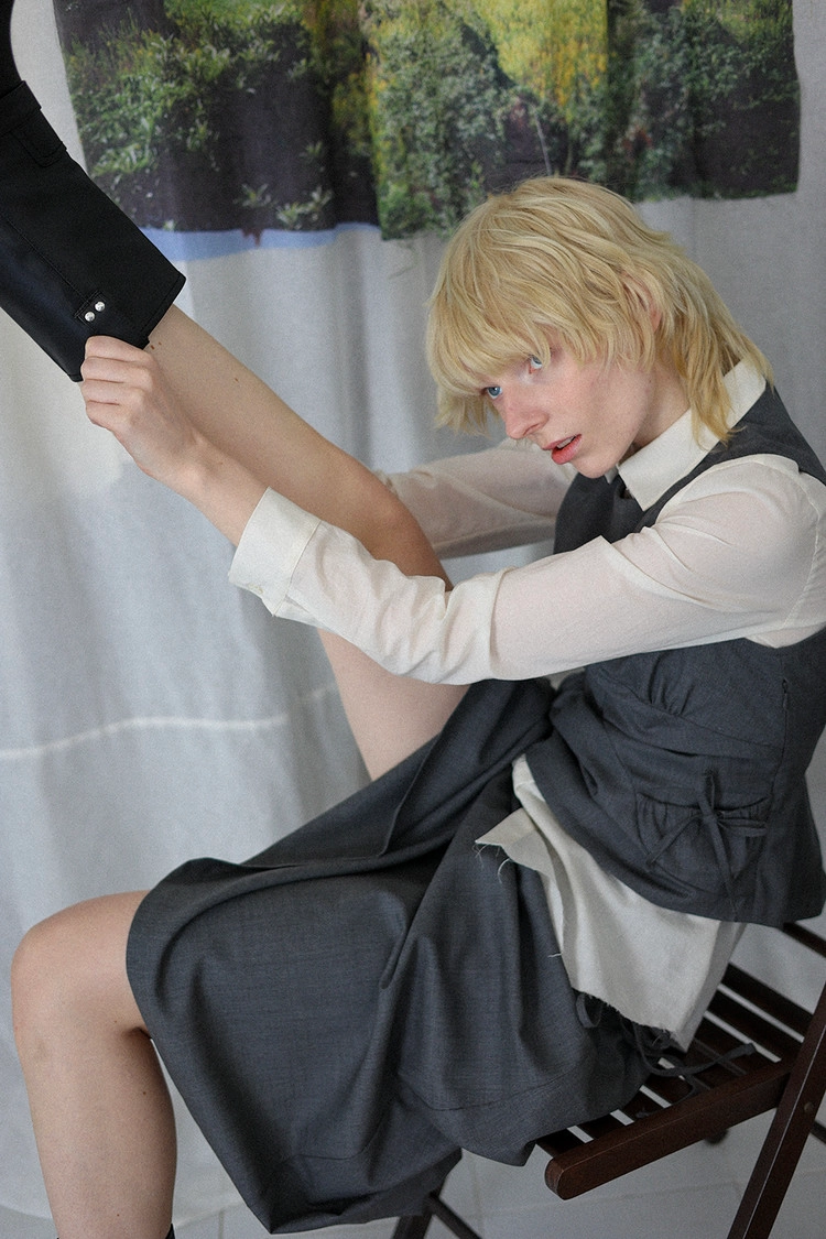This blouse embodies the essence of Teshima. It features irregular patterns reminiscent of mountains and forests. Made with soft summer wool, it's suitable for wearing alone or layering.